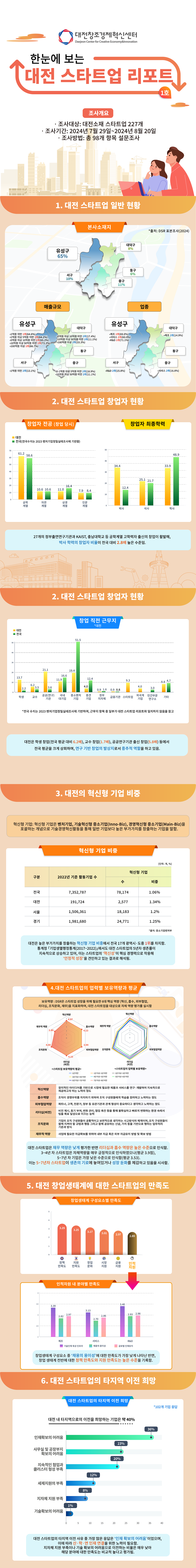 결과를 토대로 대전 창업 생태계의 주요 특성들을 인포그래픽화하여 공유드리오니